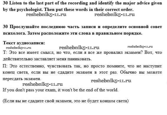 Готовая домашняя работа с ответами по Английскому языку за 10 класс Биболетова, Денисенко, Трубанева Учебник Enjoy English Аст/Астрель 2016 ФГОС - Unit 1. Start anew 30
