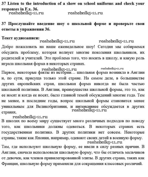 Готовая домашняя работа с ответами по Английскому языку за 10 класс Биболетова, Денисенко, Трубанева Учебник Enjoy English Аст/Астрель 2016 ФГОС - Unit 1. Start anew 37
