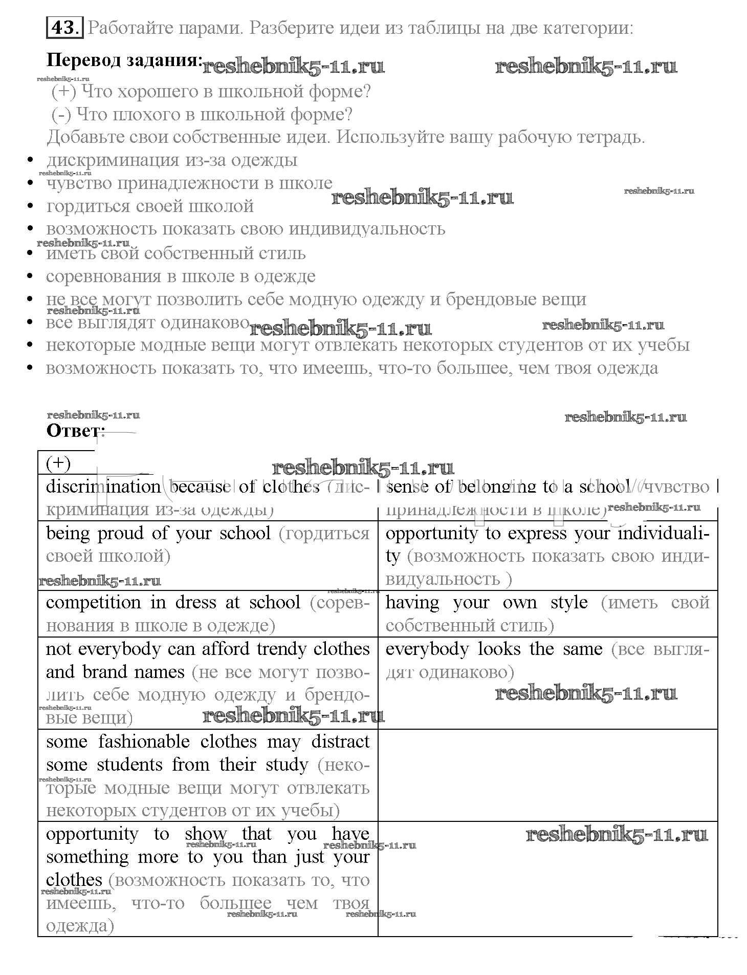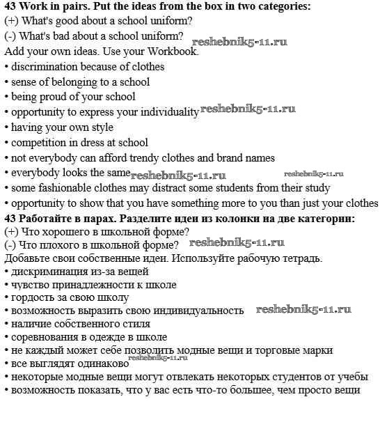 Готовая домашняя работа с ответами по Английскому языку за 10 класс Биболетова, Денисенко, Трубанева Учебник Enjoy English Аст/Астрель 2016 ФГОС - Unit 1. Start anew 43