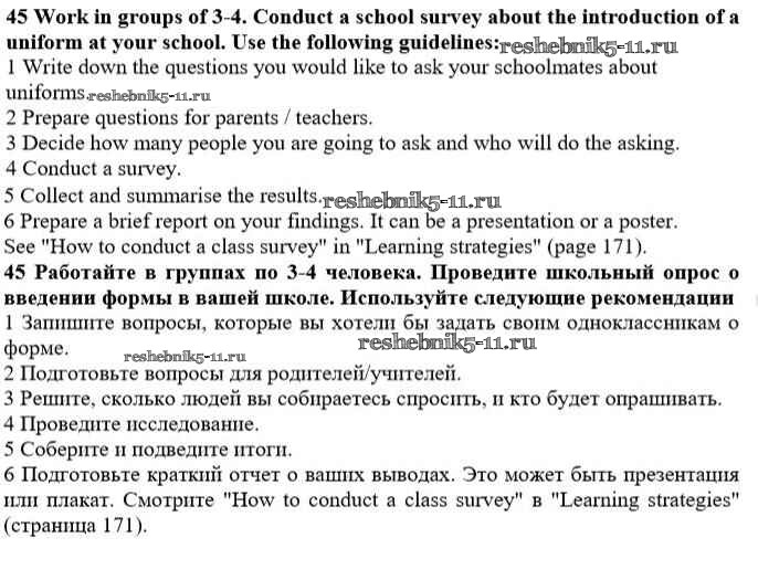 Готовая домашняя работа с ответами по Английскому языку за 10 класс Биболетова, Денисенко, Трубанева Учебник Enjoy English Аст/Астрель 2016 ФГОС - Unit 1. Start anew 45