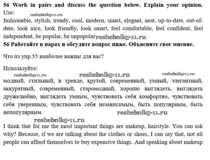 Готовая домашняя работа с ответами по Английскому языку за 10 класс Биболетова, Денисенко, Трубанева Учебник Enjoy English Аст/Астрель 2016 ФГОС - Unit 1. Start anew 56
