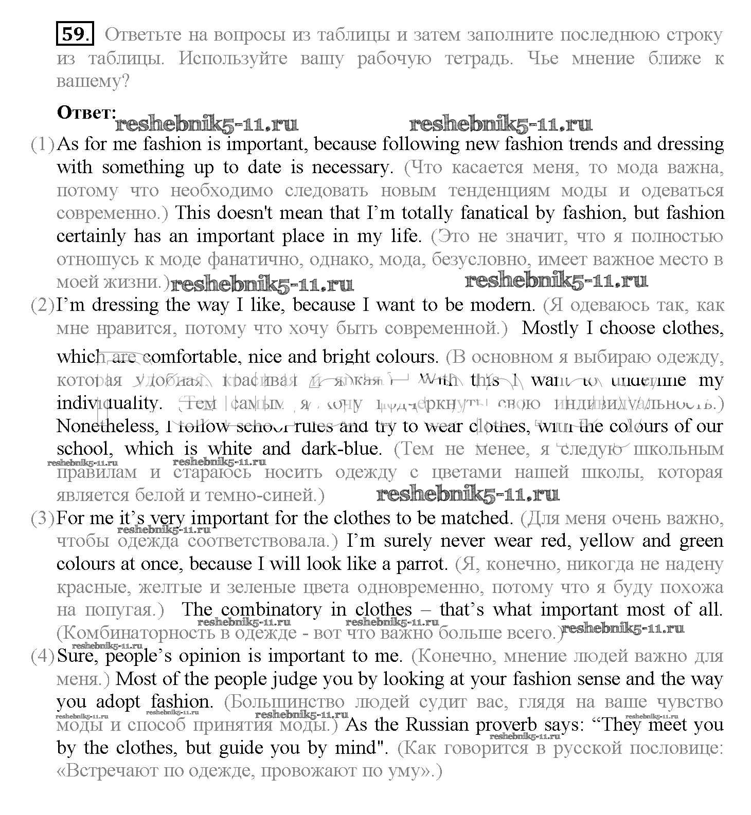 Готовая домашняя работа с ответами по Английскому языку за 10 класс Биболетова, Денисенко, Трубанева Учебник Enjoy English Аст/Астрель 2016 ФГОС - Unit 1. Start anew 59