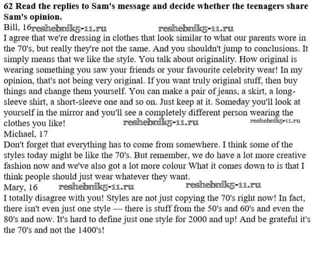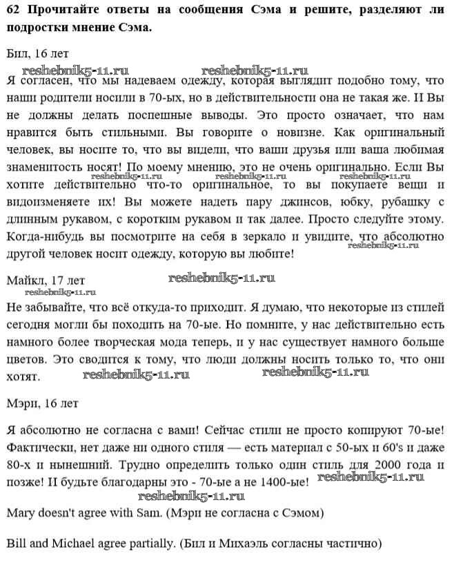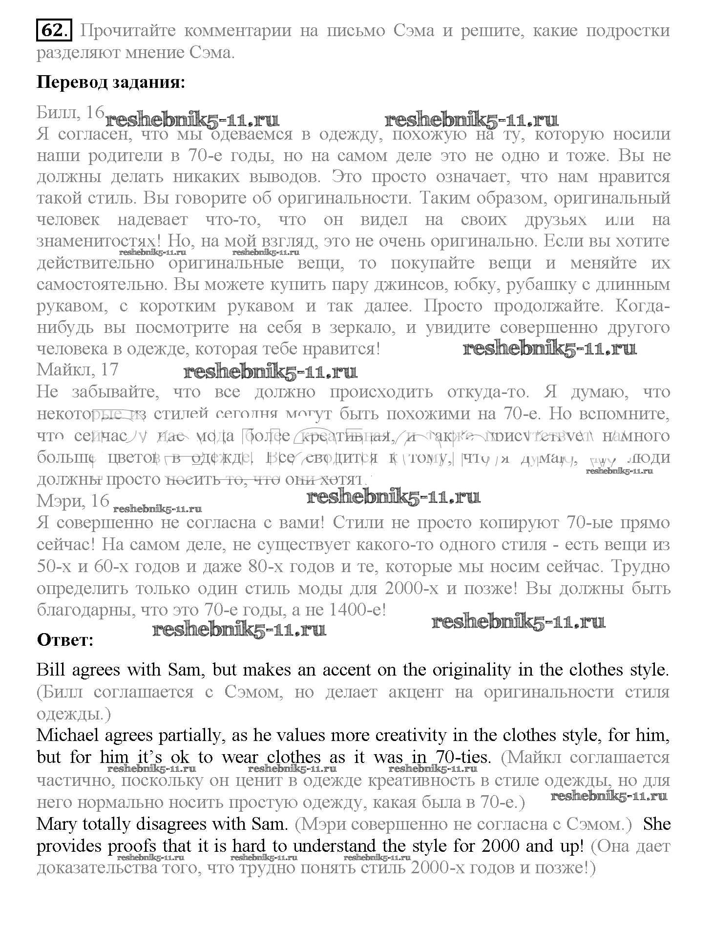 Готовая домашняя работа с ответами по Английскому языку за 10 класс Биболетова, Денисенко, Трубанева Учебник Enjoy English Аст/Астрель 2016 ФГОС - Unit 1. Start anew 62