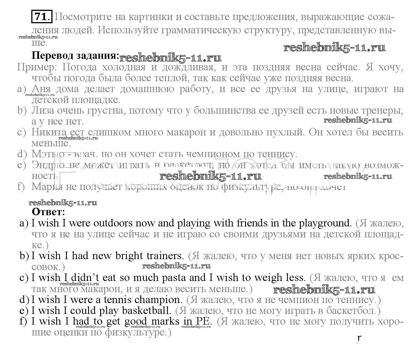 Готовая домашняя работа с ответами по Английскому языку за 10 класс Биболетова, Денисенко, Трубанева Учебник Enjoy English Аст/Астрель 2016 ФГОС - Unit 1. Start anew 71