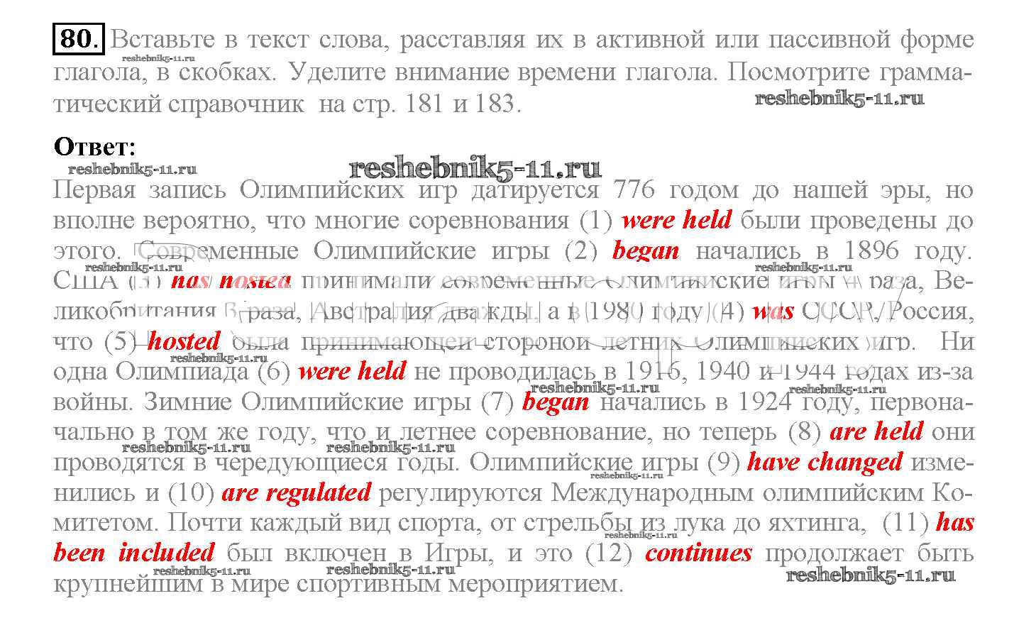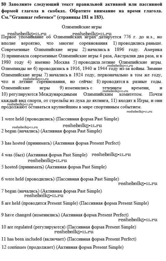 Готовая домашняя работа с ответами по Английскому языку за 10 класс Биболетова, Денисенко, Трубанева Учебник Enjoy English Аст/Астрель 2016 ФГОС - Unit 1. Start anew 80