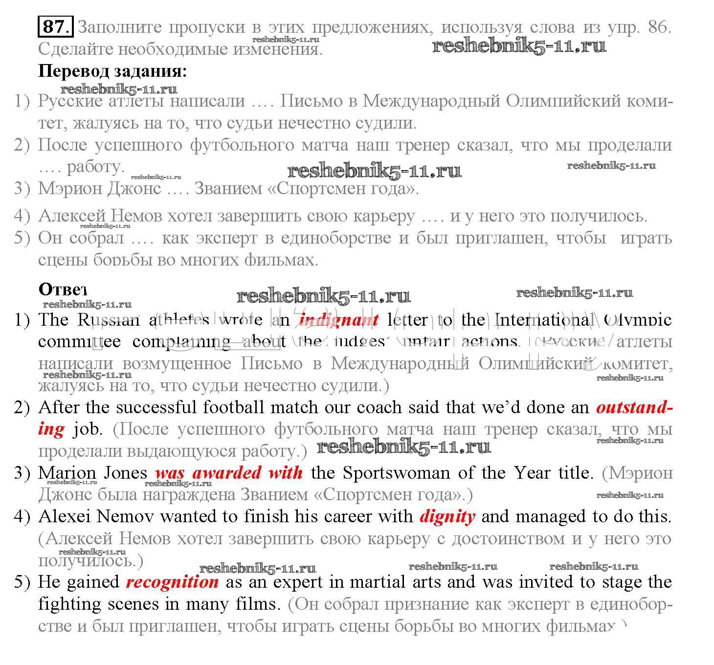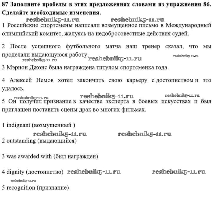 Готовая домашняя работа с ответами по Английскому языку за 10 класс Биболетова, Денисенко, Трубанева Учебник Enjoy English Аст/Астрель 2016 ФГОС - Unit 1. Start anew 87