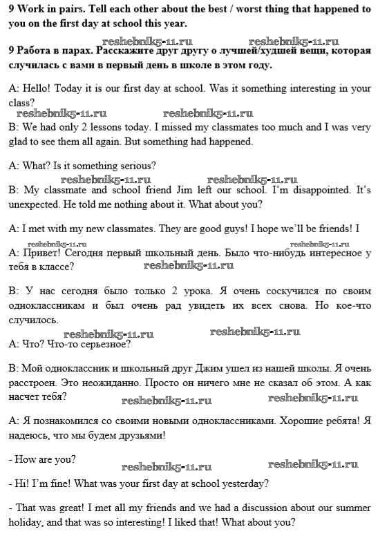 Готовая домашняя работа с ответами по Английскому языку за 10 класс Биболетова, Денисенко, Трубанева Учебник Enjoy English Аст/Астрель 2016 ФГОС - Unit 1. Start anew 9