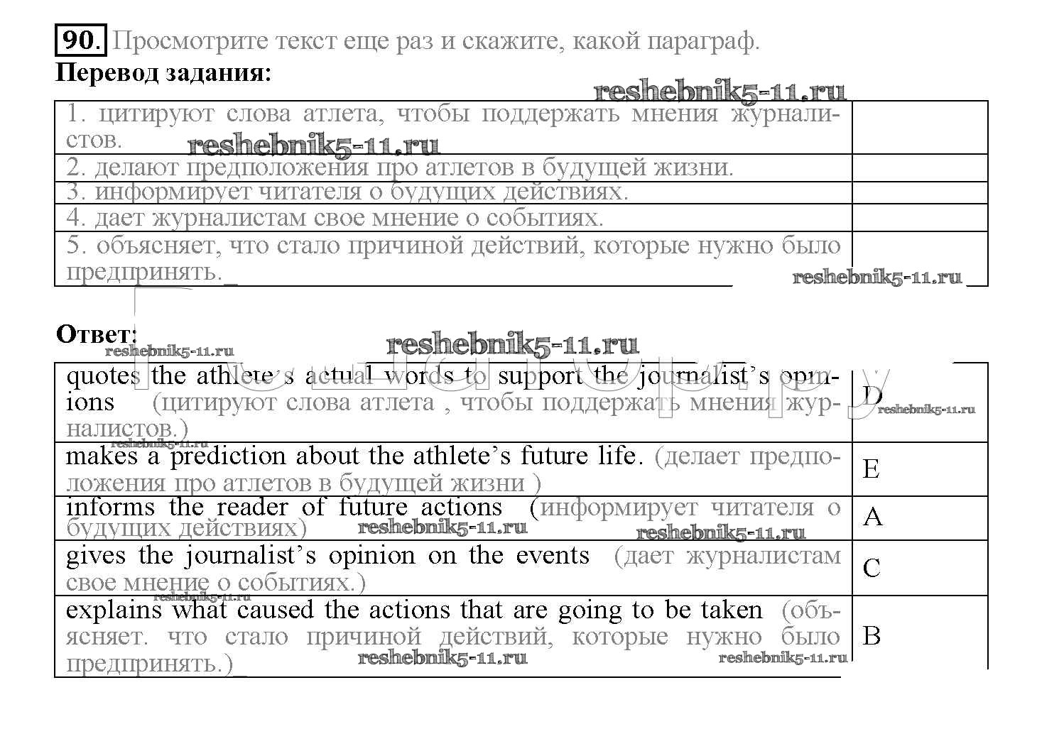 Готовая домашняя работа с ответами по Английскому языку за 10 класс Биболетова, Денисенко, Трубанева Учебник Enjoy English Аст/Астрель 2016 ФГОС - Unit 1. Start anew 90