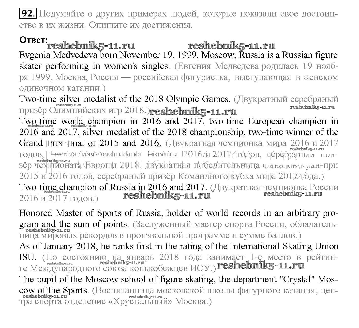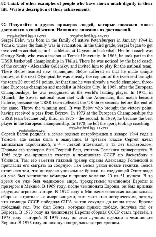 Готовая домашняя работа с ответами по Английскому языку за 10 класс Биболетова, Денисенко, Трубанева Учебник Enjoy English Аст/Астрель 2016 ФГОС - Unit 1. Start anew 92