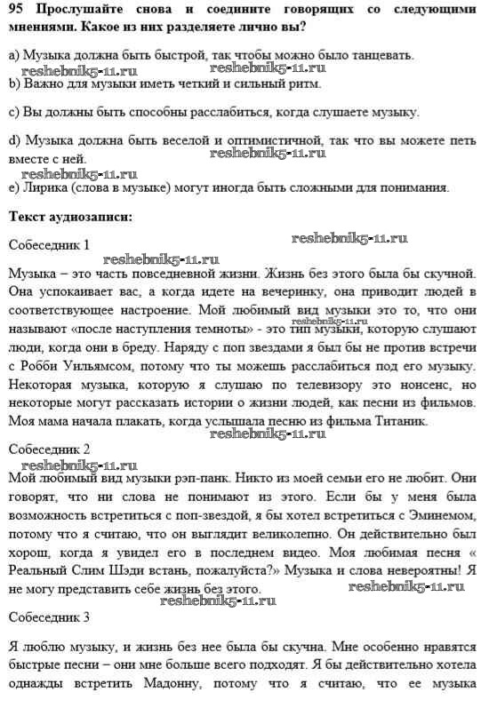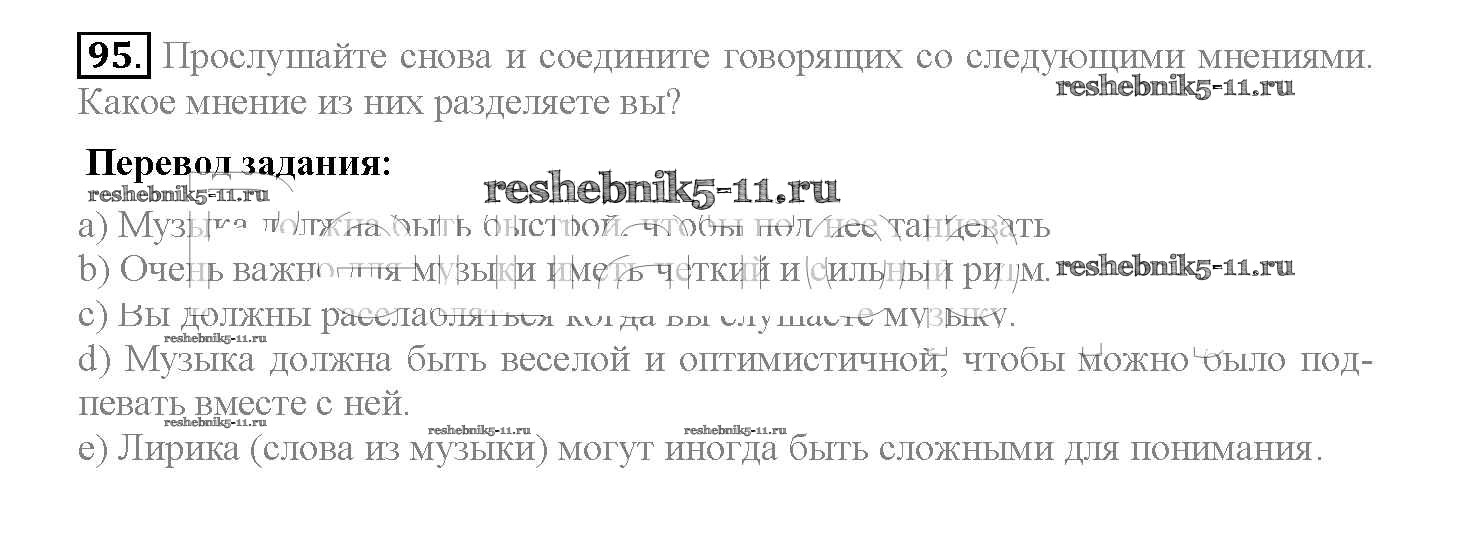 Готовая домашняя работа с ответами по Английскому языку за 10 класс Биболетова, Денисенко, Трубанева Учебник Enjoy English Аст/Астрель 2016 ФГОС - Unit 1. Start anew 95