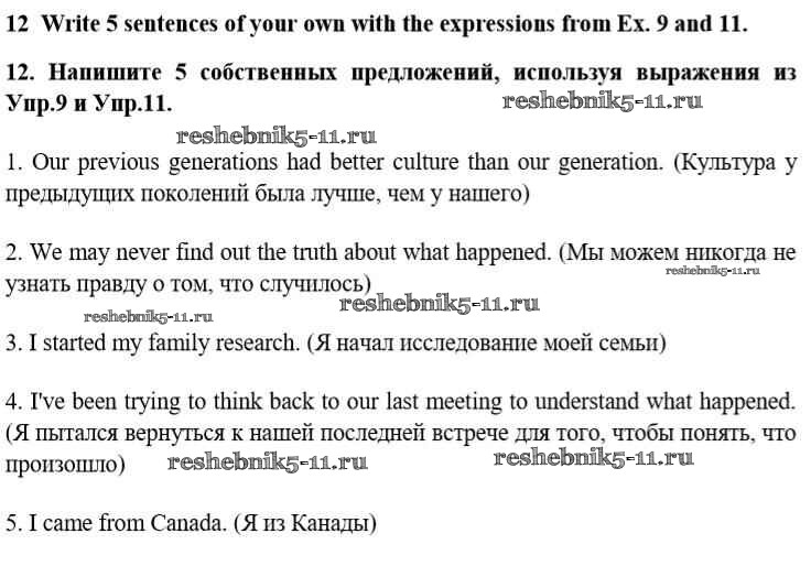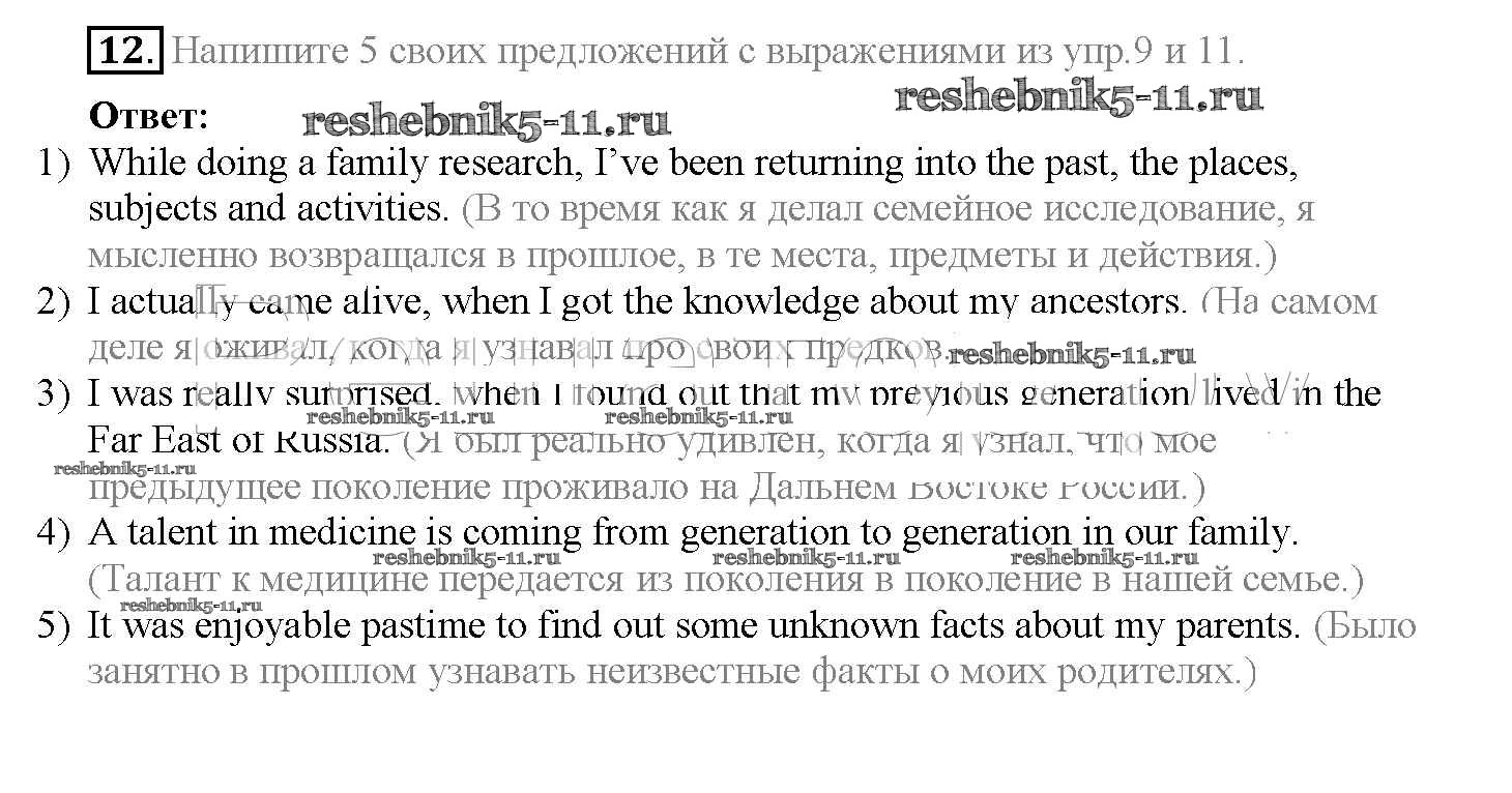 Готовая домашняя работа с ответами по Английскому языку за 10 класс Биболетова, Денисенко, Трубанева Учебник Enjoy English Аст/Астрель 2016 ФГОС - Unit 2. Talking on family matters 12
