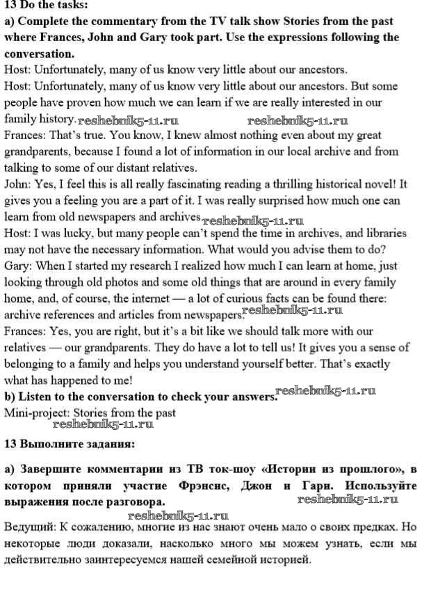 Готовая домашняя работа с ответами по Английскому языку за 10 класс Биболетова, Денисенко, Трубанева Учебник Enjoy English Аст/Астрель 2016 ФГОС - Unit 2. Talking on family matters 13