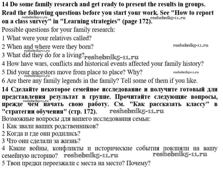 Готовая домашняя работа с ответами по Английскому языку за 10 класс Биболетова, Денисенко, Трубанева Учебник Enjoy English Аст/Астрель 2016 ФГОС - Unit 2. Talking on family matters 14