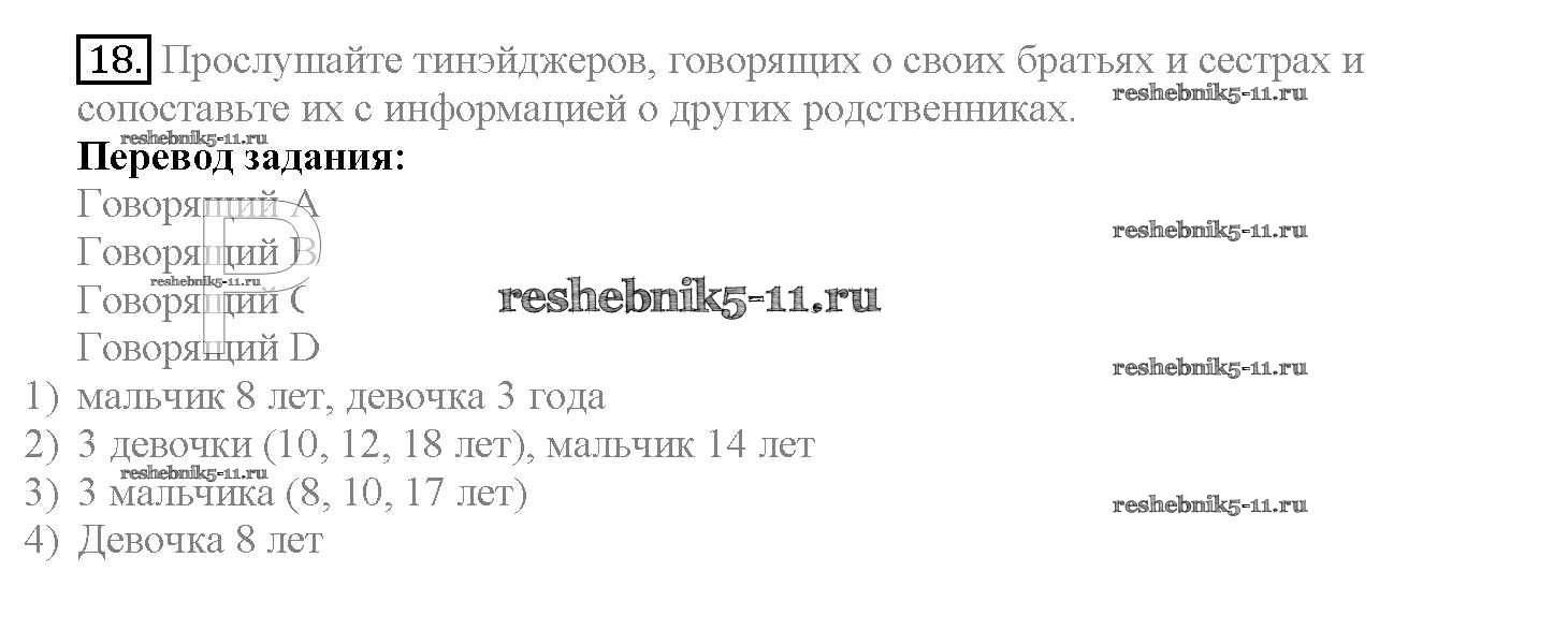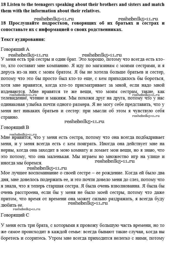 Готовая домашняя работа с ответами по Английскому языку за 10 класс Биболетова, Денисенко, Трубанева Учебник Enjoy English Аст/Астрель 2016 ФГОС - Unit 2. Talking on family matters 18
