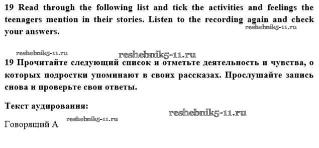 Готовая домашняя работа с ответами по Английскому языку за 10 класс Биболетова, Денисенко, Трубанева Учебник Enjoy English Аст/Астрель 2016 ФГОС - Unit 2. Talking on family matters 19