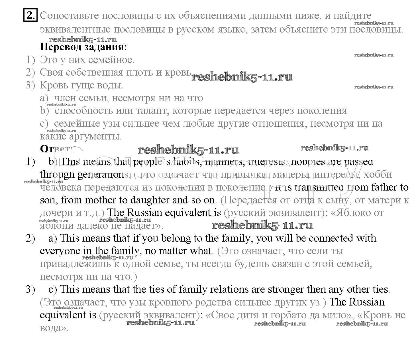 Готовая домашняя работа с ответами по Английскому языку за 10 класс Биболетова, Денисенко, Трубанева Учебник Enjoy English Аст/Астрель 2016 ФГОС - Unit 2. Talking on family matters 2