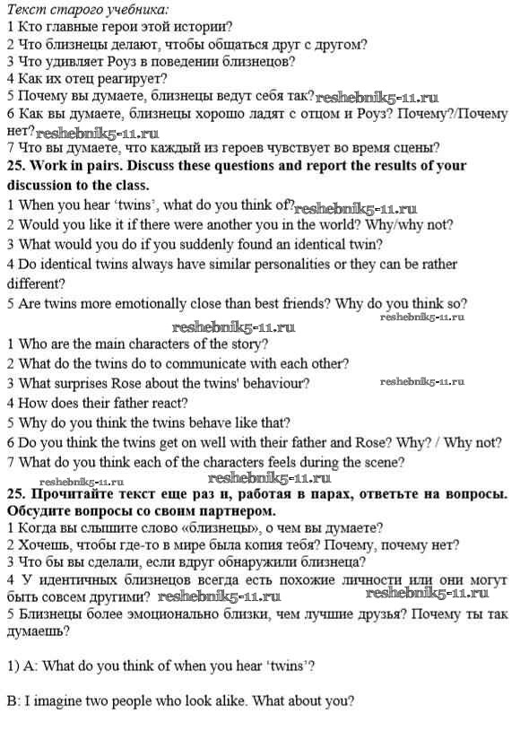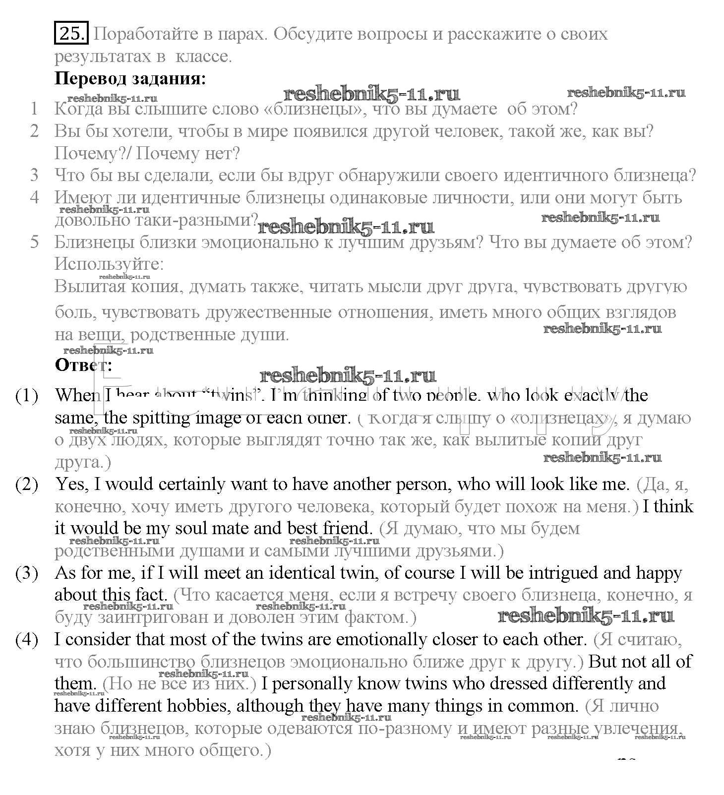 Готовая домашняя работа с ответами по Английскому языку за 10 класс Биболетова, Денисенко, Трубанева Учебник Enjoy English Аст/Астрель 2016 ФГОС - Unit 2. Talking on family matters 25