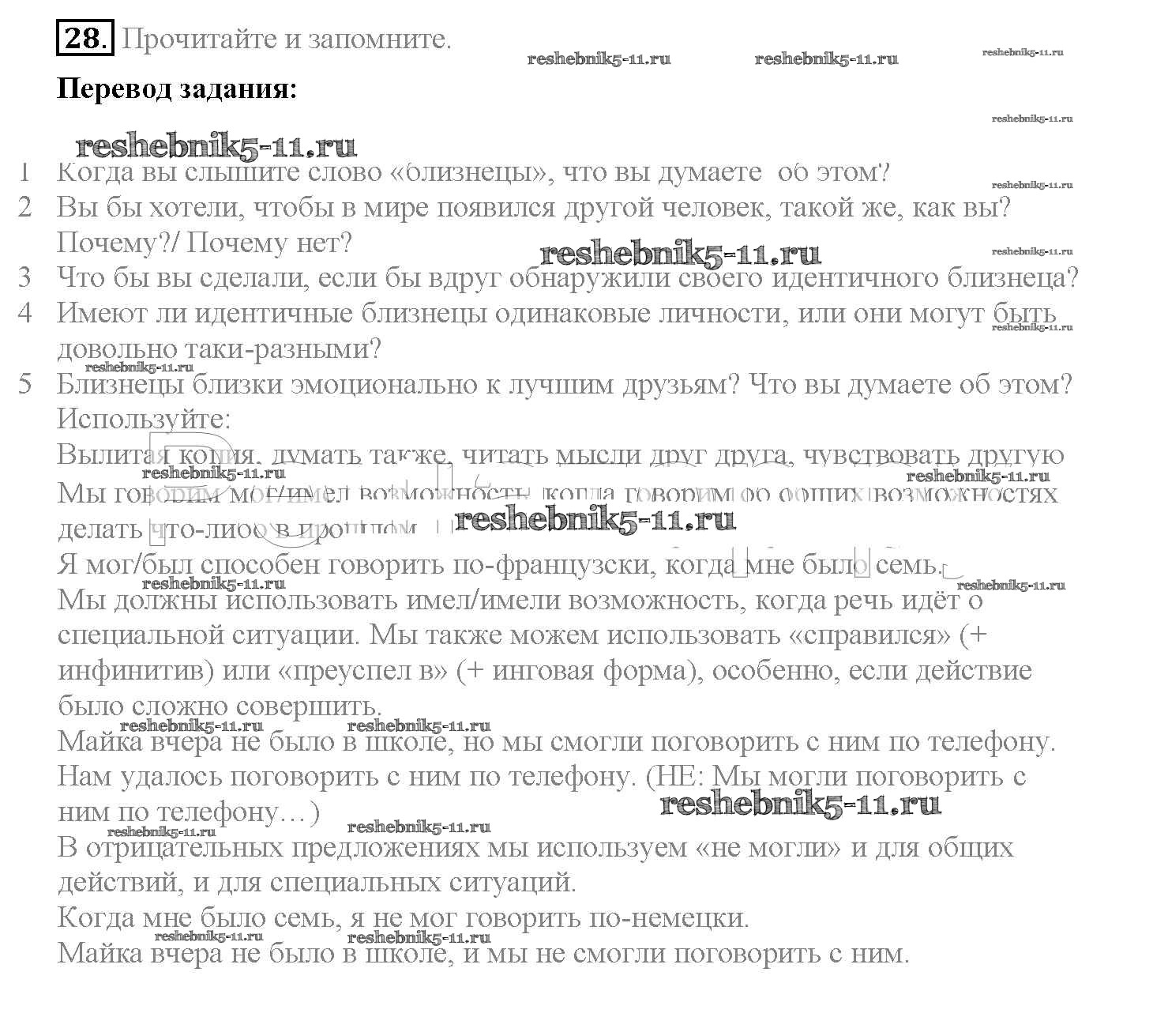 Готовая домашняя работа с ответами по Английскому языку за 10 класс Биболетова, Денисенко, Трубанева Учебник Enjoy English Аст/Астрель 2016 ФГОС - Unit 2. Talking on family matters 28