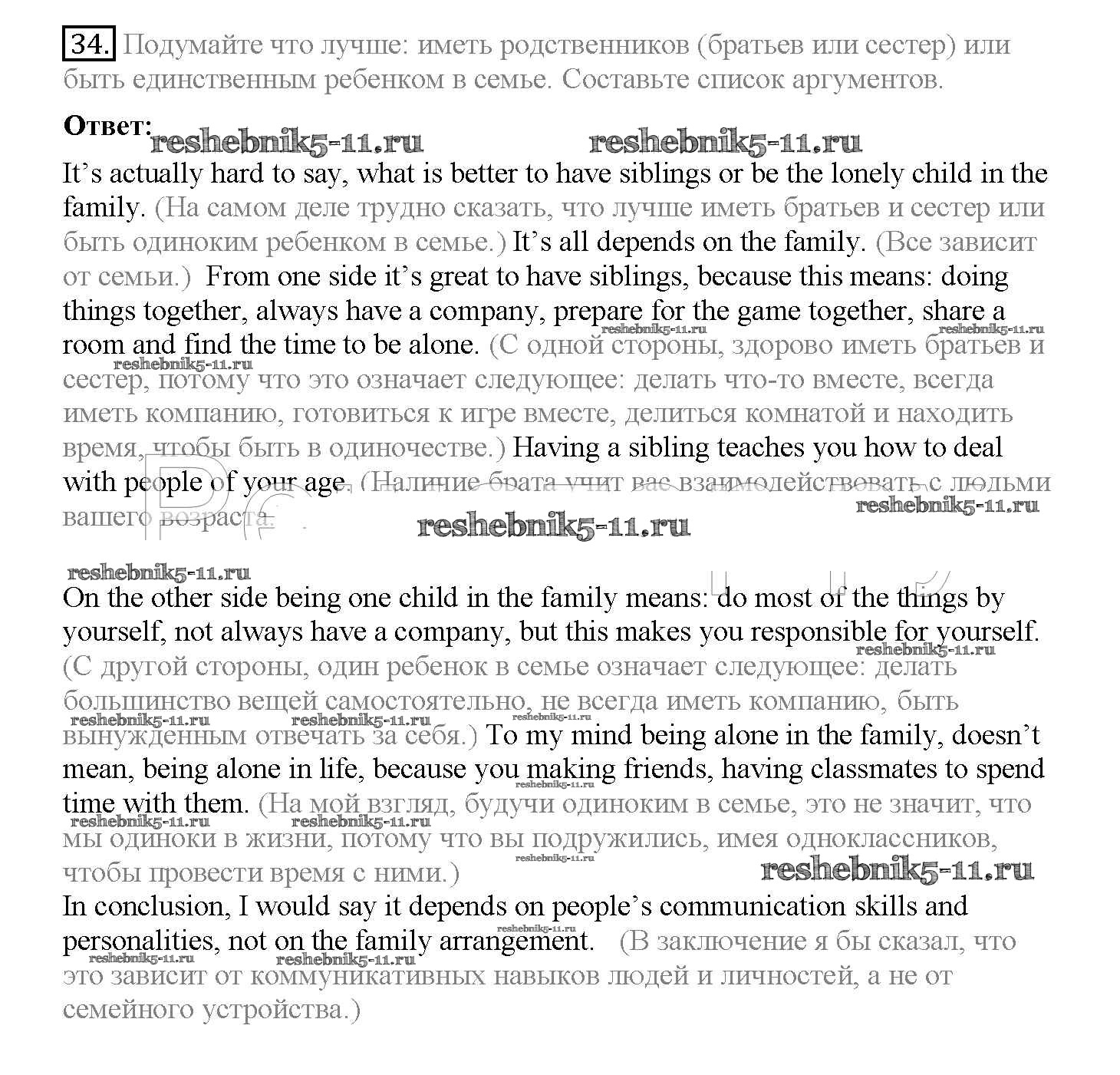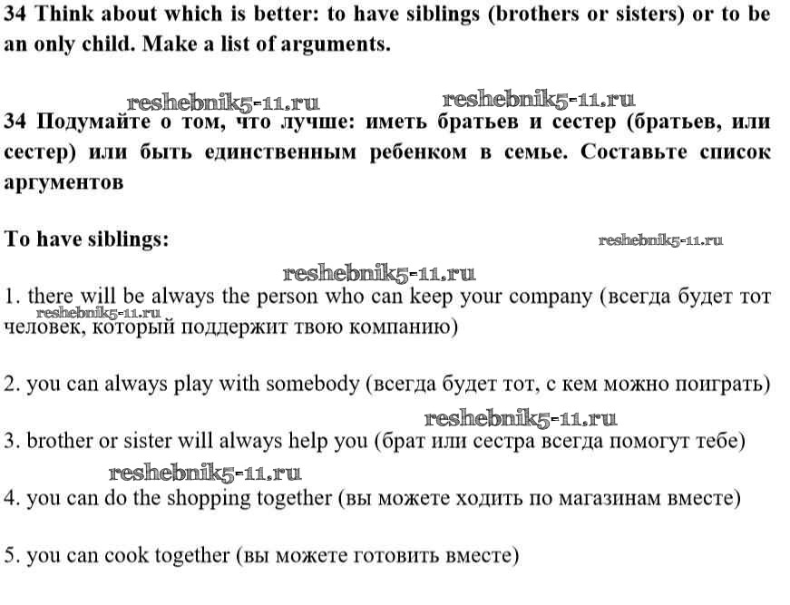 Готовая домашняя работа с ответами по Английскому языку за 10 класс Биболетова, Денисенко, Трубанева Учебник Enjoy English Аст/Астрель 2016 ФГОС - Unit 2. Talking on family matters 34