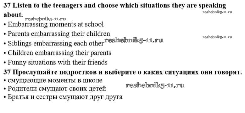 Готовая домашняя работа с ответами по Английскому языку за 10 класс Биболетова, Денисенко, Трубанева Учебник Enjoy English Аст/Астрель 2016 ФГОС - Unit 2. Talking on family matters 37