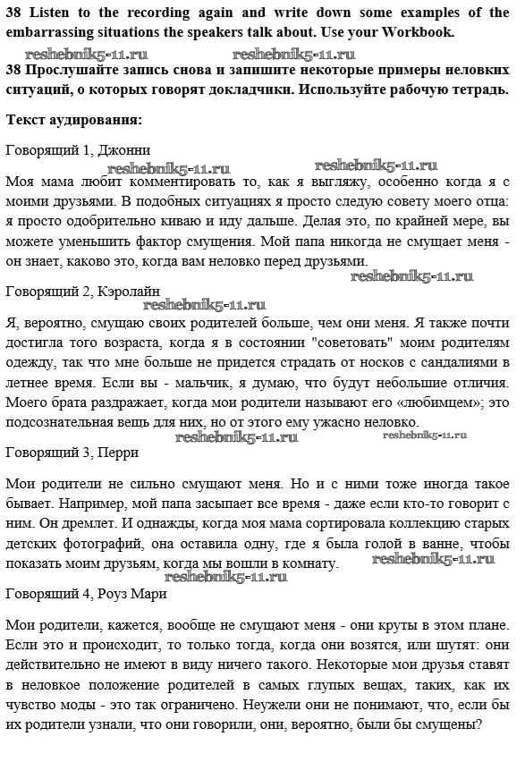 Готовая домашняя работа с ответами по Английскому языку за 10 класс Биболетова, Денисенко, Трубанева Учебник Enjoy English Аст/Астрель 2016 ФГОС - Unit 2. Talking on family matters 38