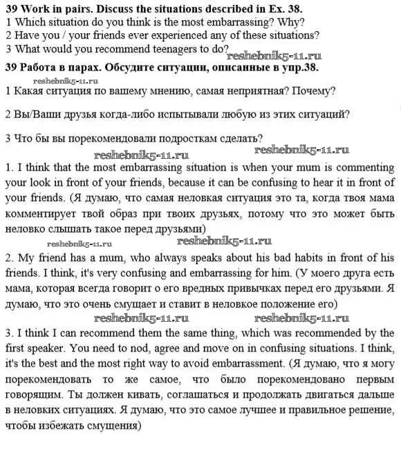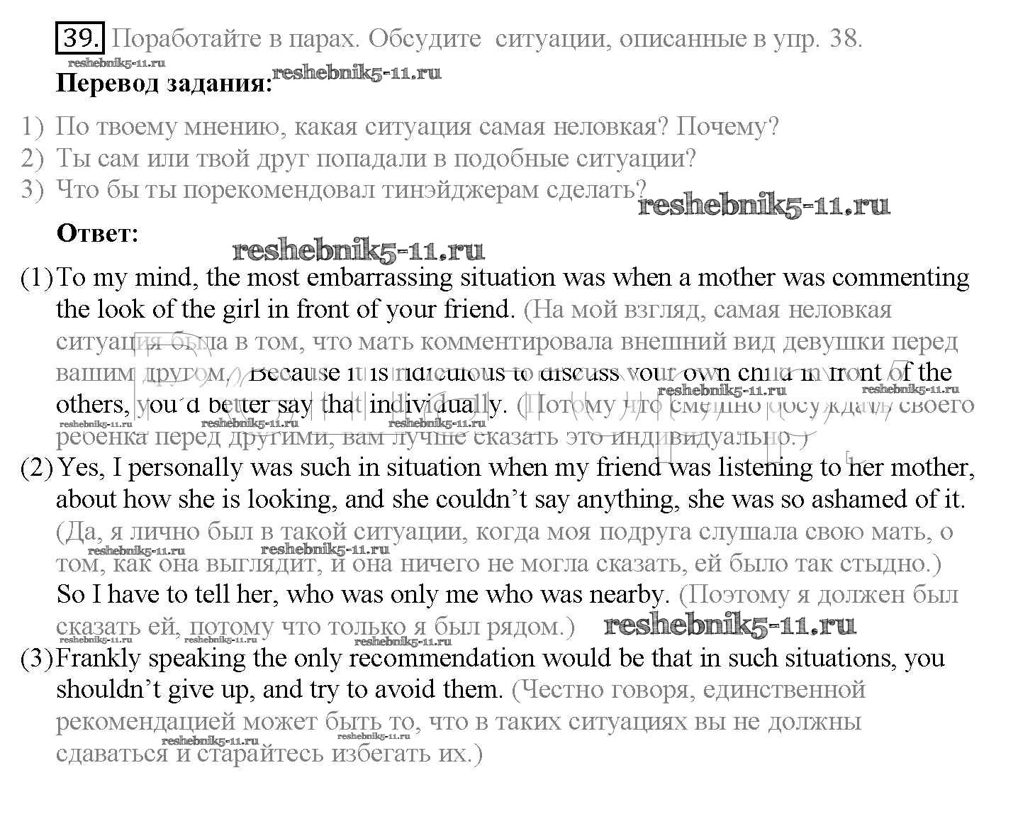Готовая домашняя работа с ответами по Английскому языку за 10 класс Биболетова, Денисенко, Трубанева Учебник Enjoy English Аст/Астрель 2016 ФГОС - Unit 2. Talking on family matters 39