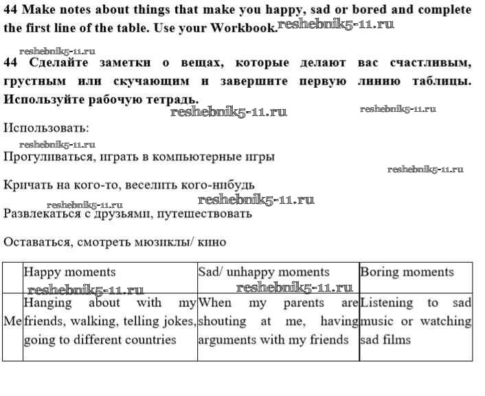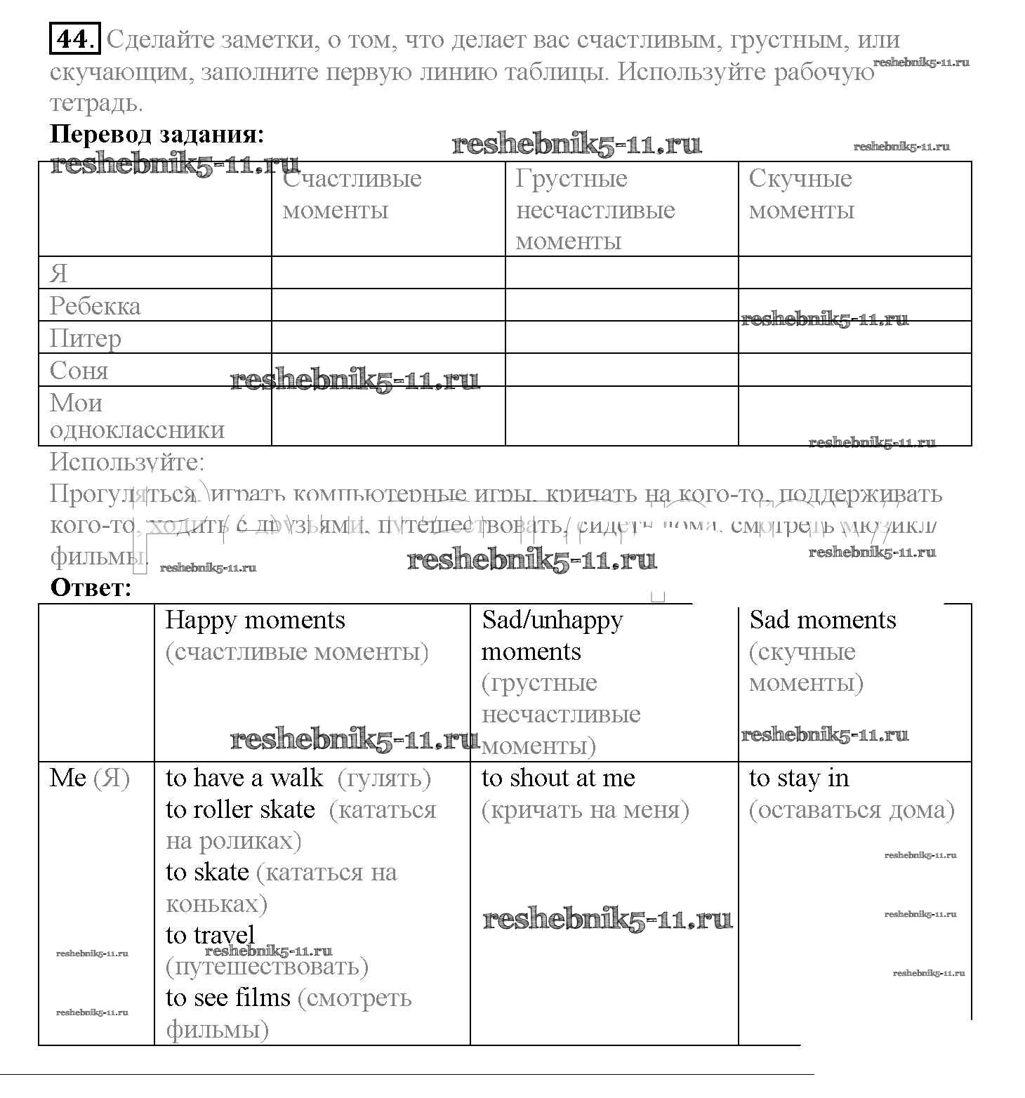 Готовая домашняя работа с ответами по Английскому языку за 10 класс Биболетова, Денисенко, Трубанева Учебник Enjoy English Аст/Астрель 2016 ФГОС - Unit 2. Talking on family matters 44