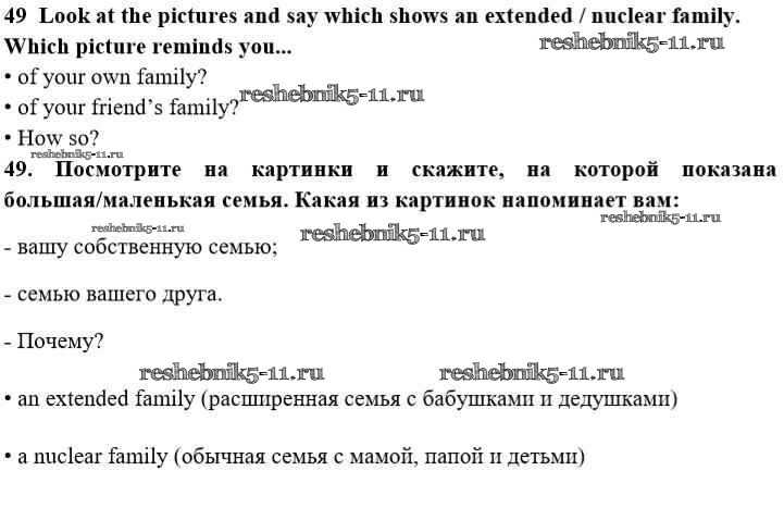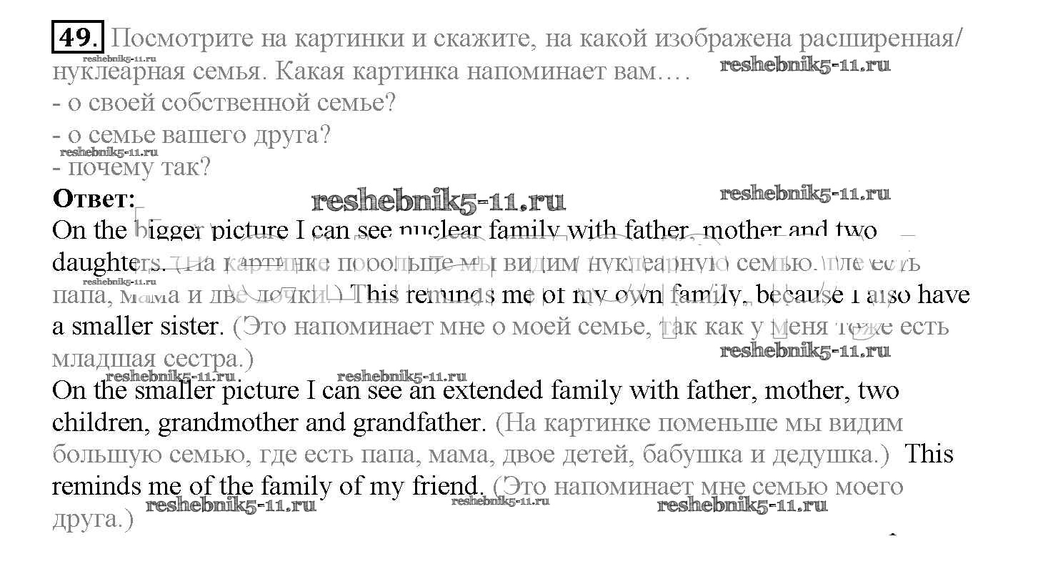 Готовая домашняя работа с ответами по Английскому языку за 10 класс Биболетова, Денисенко, Трубанева Учебник Enjoy English Аст/Астрель 2016 ФГОС - Unit 2. Talking on family matters 49