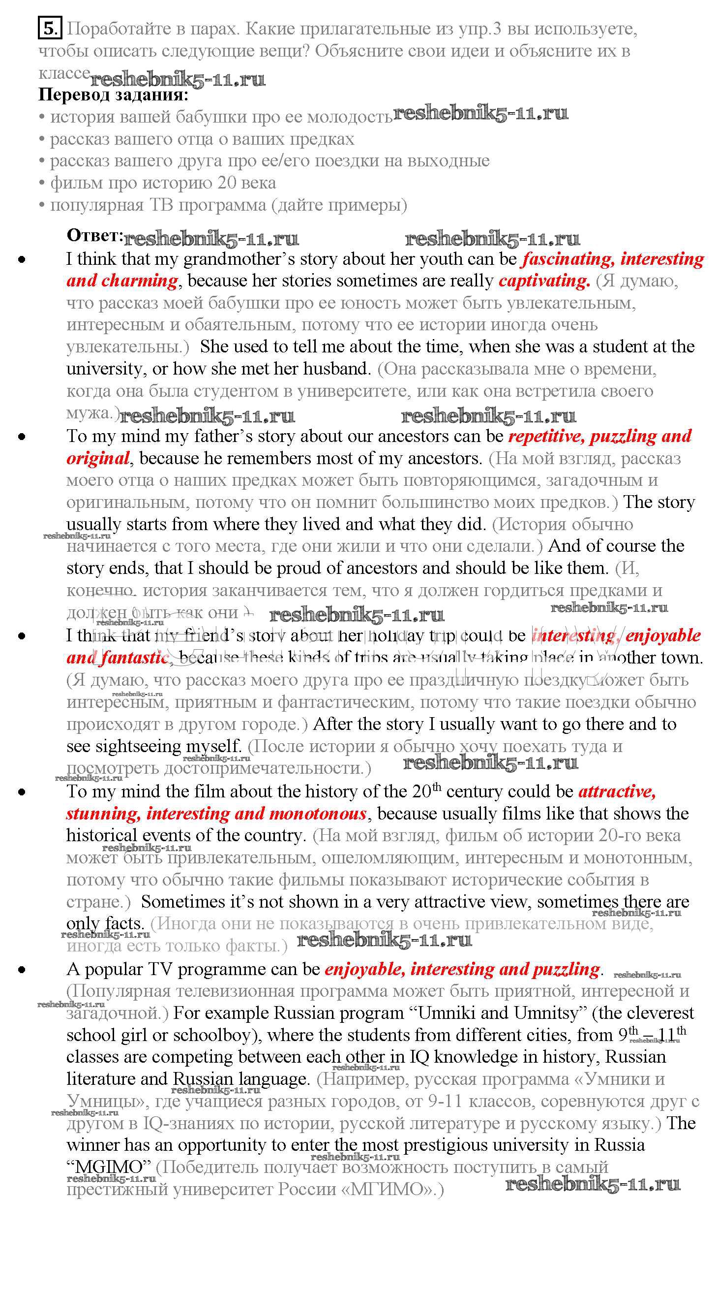Готовая домашняя работа с ответами по Английскому языку за 10 класс Биболетова, Денисенко, Трубанева Учебник Enjoy English Аст/Астрель 2016 ФГОС - Unit 2. Talking on family matters 5