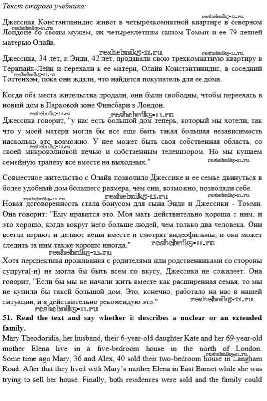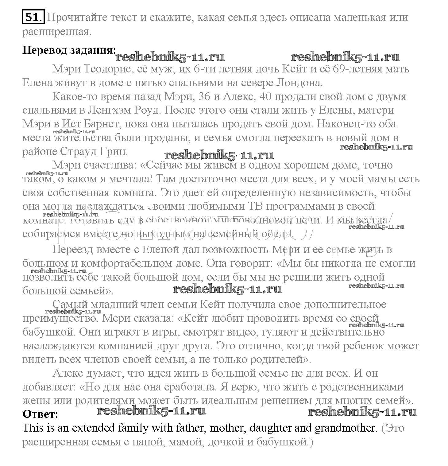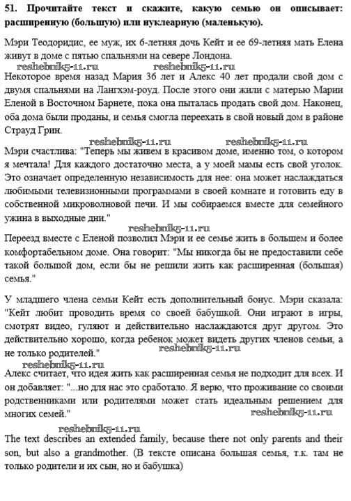Готовая домашняя работа с ответами по Английскому языку за 10 класс Биболетова, Денисенко, Трубанева Учебник Enjoy English Аст/Астрель 2016 ФГОС - Unit 2. Talking on family matters 51