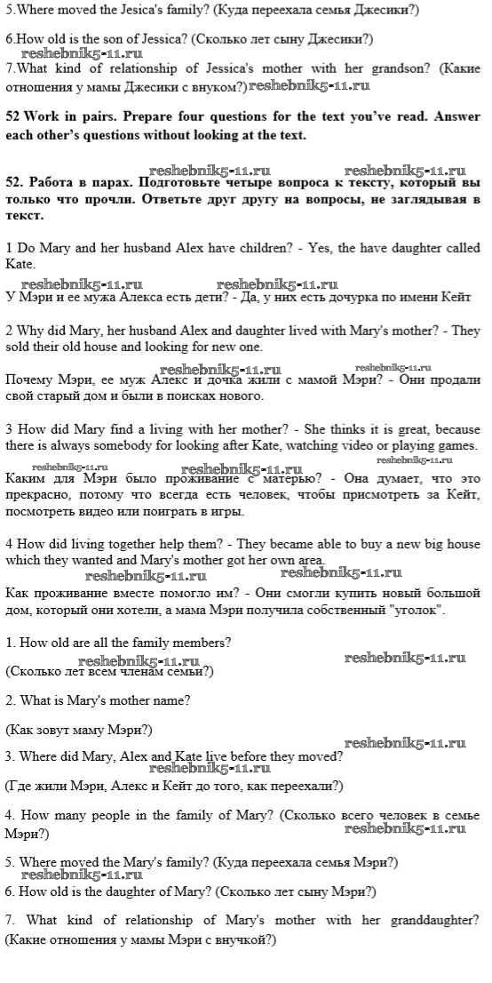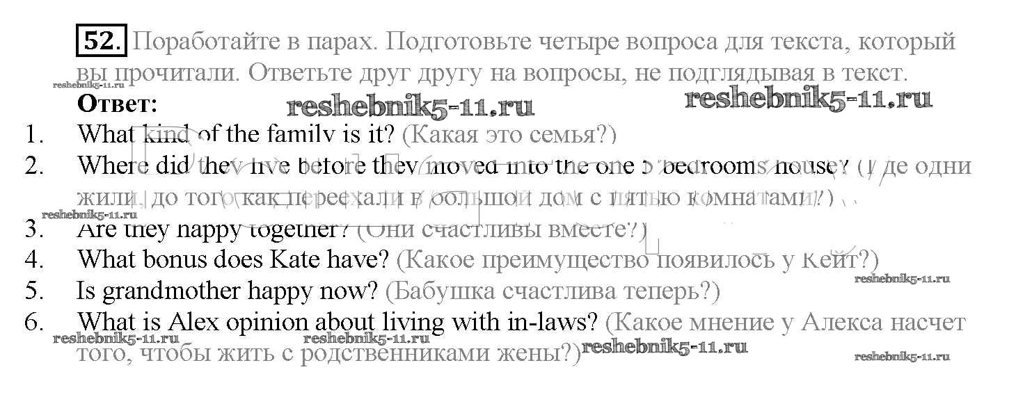 Готовая домашняя работа с ответами по Английскому языку за 10 класс Биболетова, Денисенко, Трубанева Учебник Enjoy English Аст/Астрель 2016 ФГОС - Unit 2. Talking on family matters 52