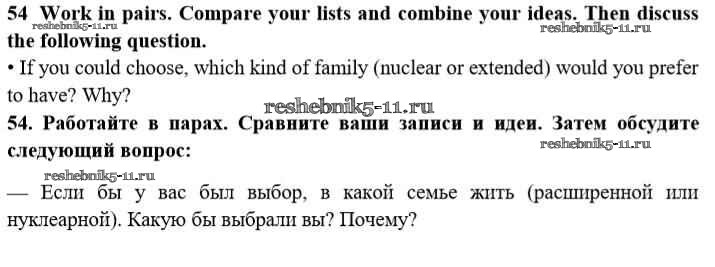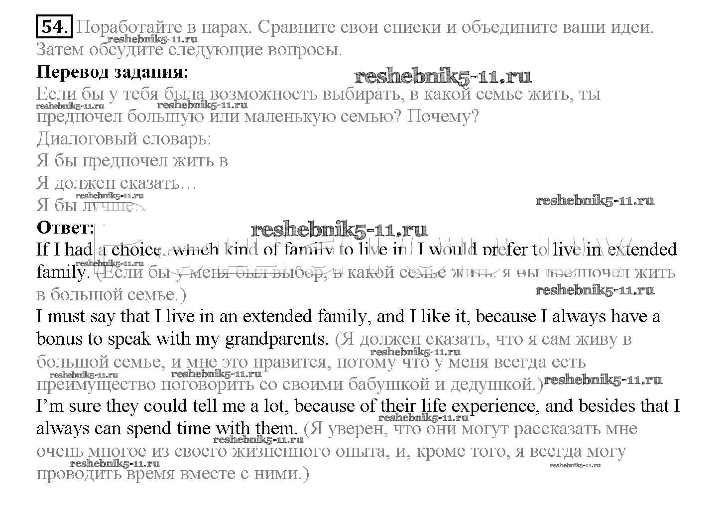 Готовая домашняя работа с ответами по Английскому языку за 10 класс Биболетова, Денисенко, Трубанева Учебник Enjoy English Аст/Астрель 2016 ФГОС - Unit 2. Talking on family matters 54