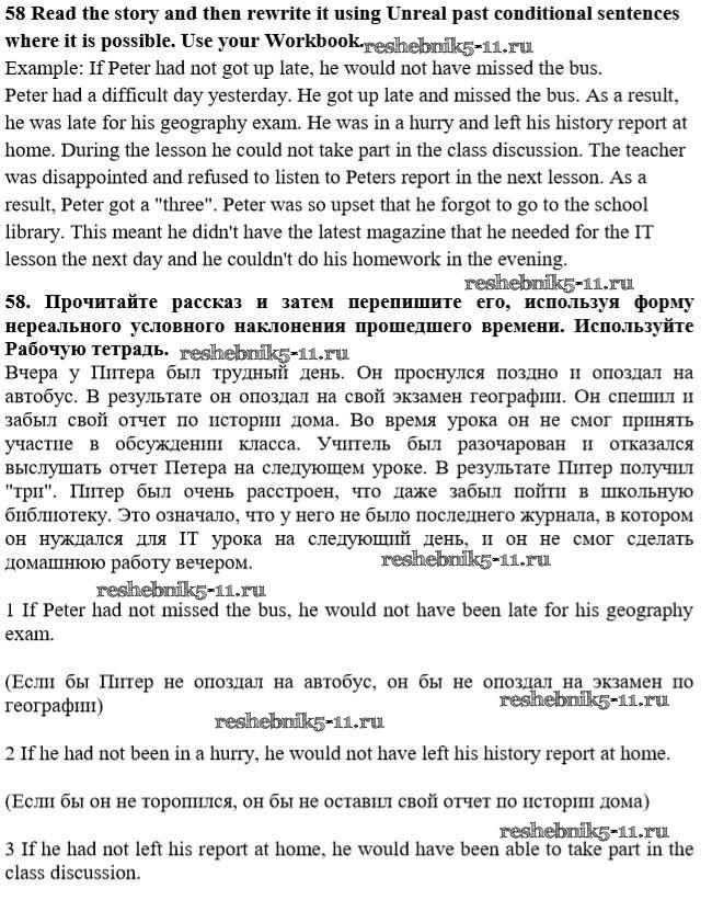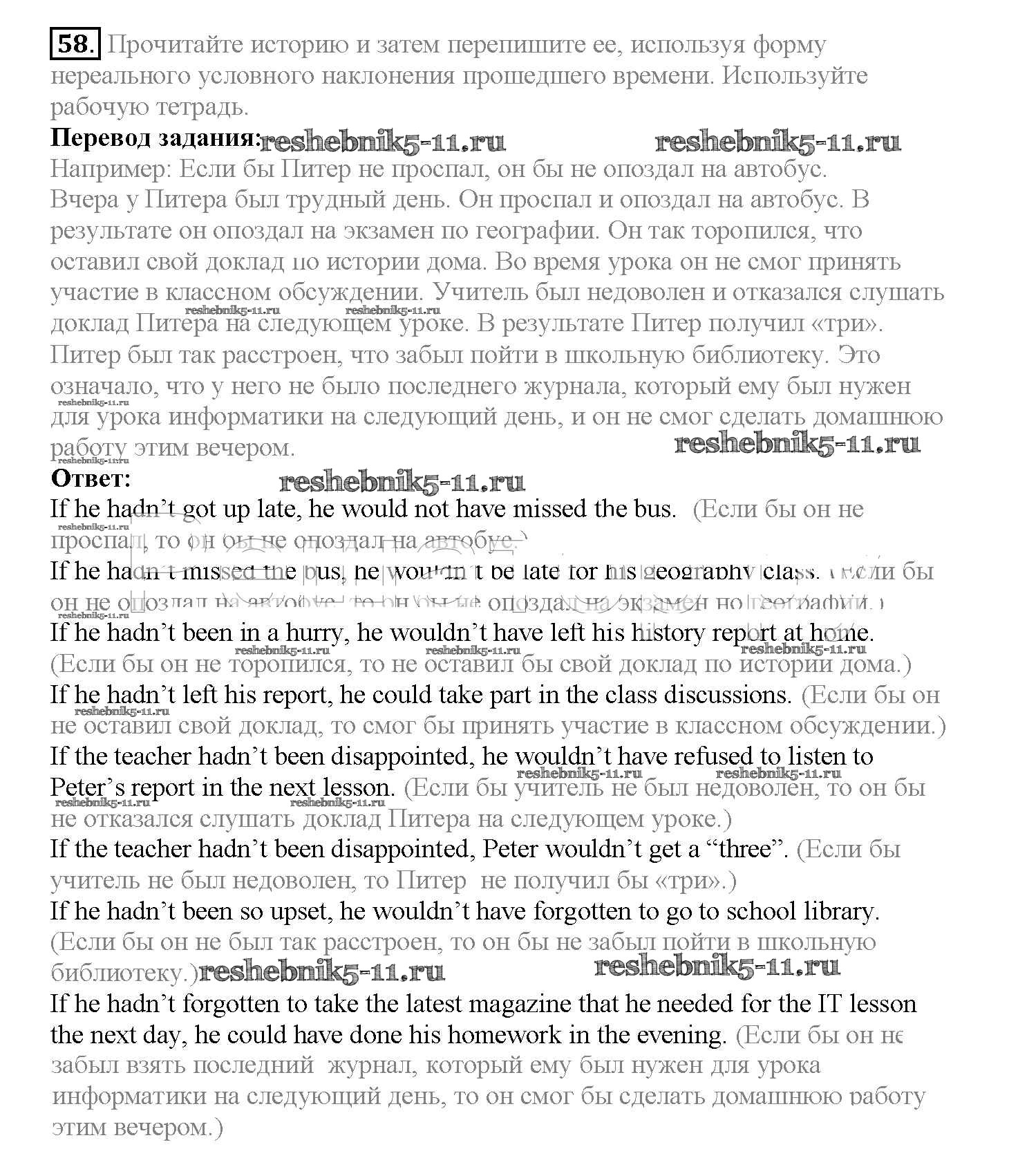 Готовая домашняя работа с ответами по Английскому языку за 10 класс Биболетова, Денисенко, Трубанева Учебник Enjoy English Аст/Астрель 2016 ФГОС - Unit 2. Talking on family matters 58