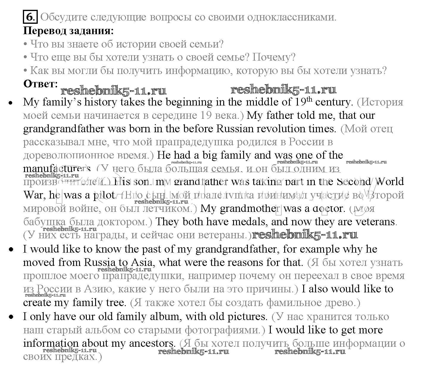 Готовая домашняя работа с ответами по Английскому языку за 10 класс Биболетова, Денисенко, Трубанева Учебник Enjoy English Аст/Астрель 2016 ФГОС - Unit 2. Talking on family matters 6
