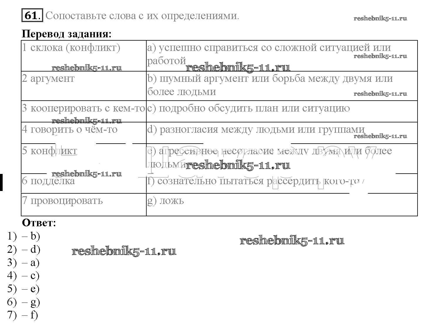 Готовая домашняя работа с ответами по Английскому языку за 10 класс Биболетова, Денисенко, Трубанева Учебник Enjoy English Аст/Астрель 2016 ФГОС - Unit 2. Talking on family matters 61