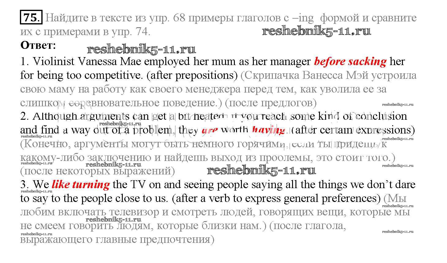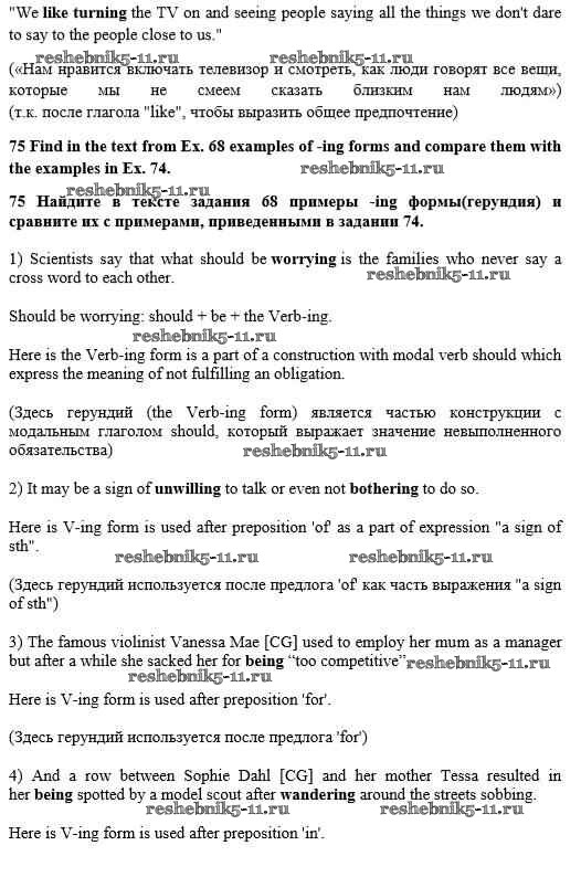 Готовая домашняя работа с ответами по Английскому языку за 10 класс Биболетова, Денисенко, Трубанева Учебник Enjoy English Аст/Астрель 2016 ФГОС - Unit 2. Talking on family matters 75