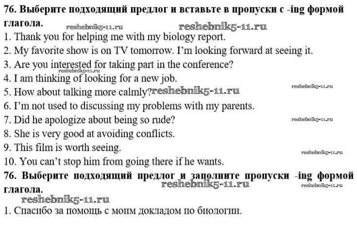Готовая домашняя работа с ответами по Английскому языку за 10 класс Биболетова, Денисенко, Трубанева Учебник Enjoy English Аст/Астрель 2016 ФГОС - Unit 2. Talking on family matters 76