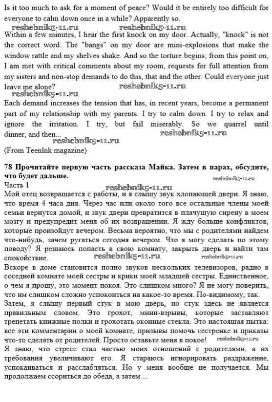Готовая домашняя работа с ответами по Английскому языку за 10 класс Биболетова, Денисенко, Трубанева Учебник Enjoy English Аст/Астрель 2016 ФГОС - Unit 2. Talking on family matters 78