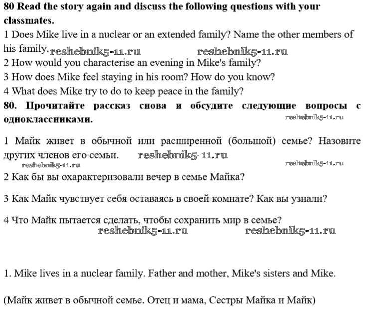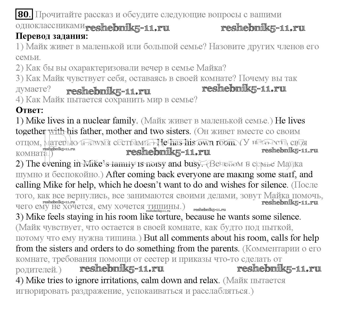 Готовая домашняя работа с ответами по Английскому языку за 10 класс Биболетова, Денисенко, Трубанева Учебник Enjoy English Аст/Астрель 2016 ФГОС - Unit 2. Talking on family matters 80