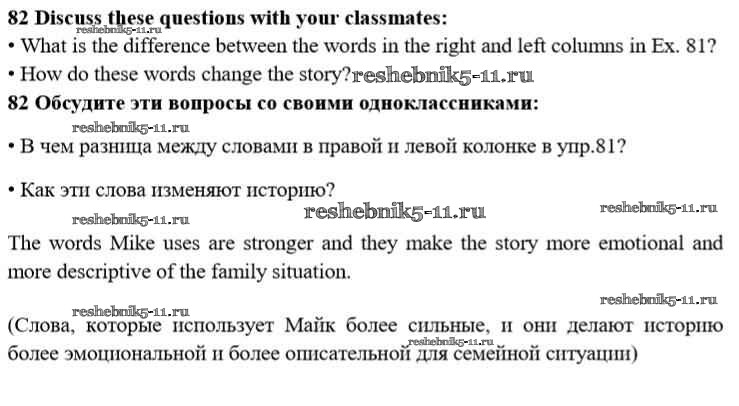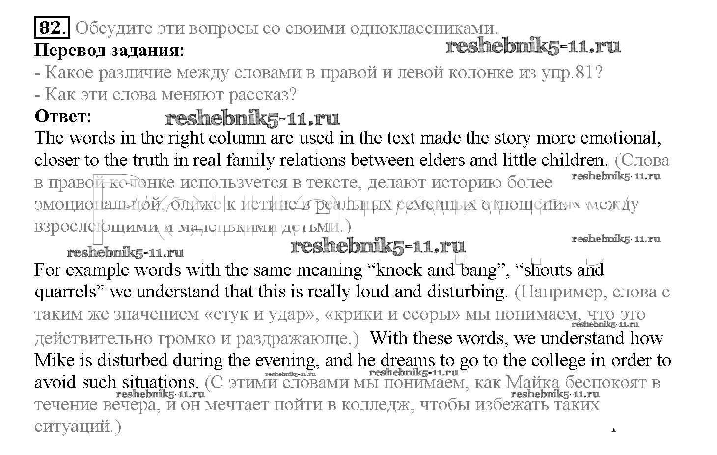 Готовая домашняя работа с ответами по Английскому языку за 10 класс Биболетова, Денисенко, Трубанева Учебник Enjoy English Аст/Астрель 2016 ФГОС - Unit 2. Talking on family matters 82