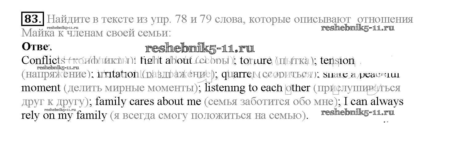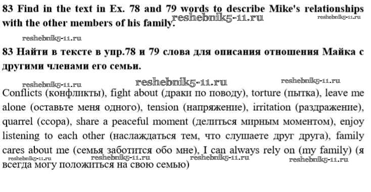 Готовая домашняя работа с ответами по Английскому языку за 10 класс Биболетова, Денисенко, Трубанева Учебник Enjoy English Аст/Астрель 2016 ФГОС - Unit 2. Talking on family matters 83