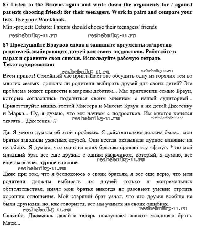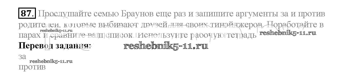 Готовая домашняя работа с ответами по Английскому языку за 10 класс Биболетова, Денисенко, Трубанева Учебник Enjoy English Аст/Астрель 2016 ФГОС - Unit 2. Talking on family matters 87