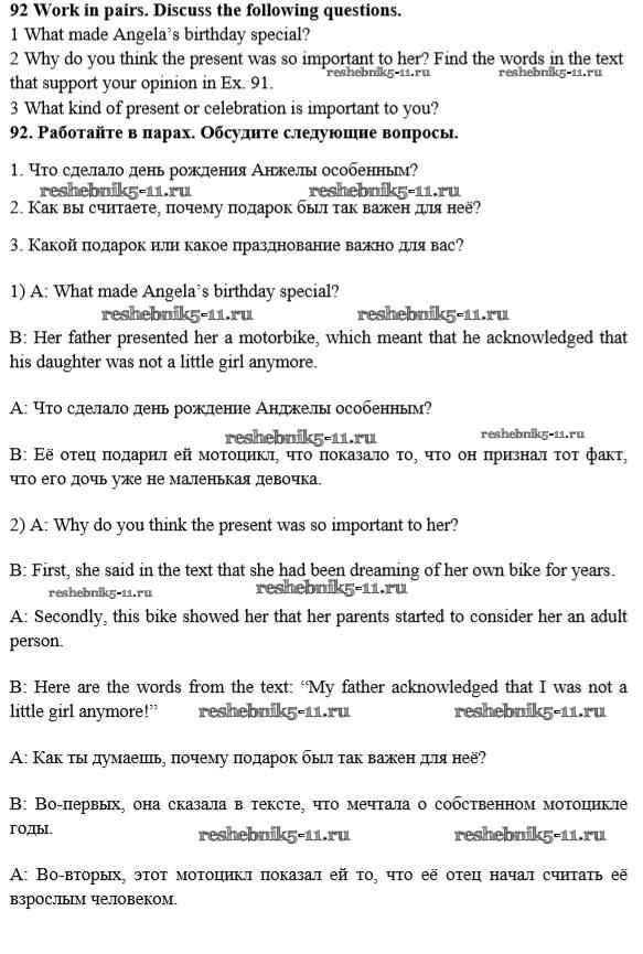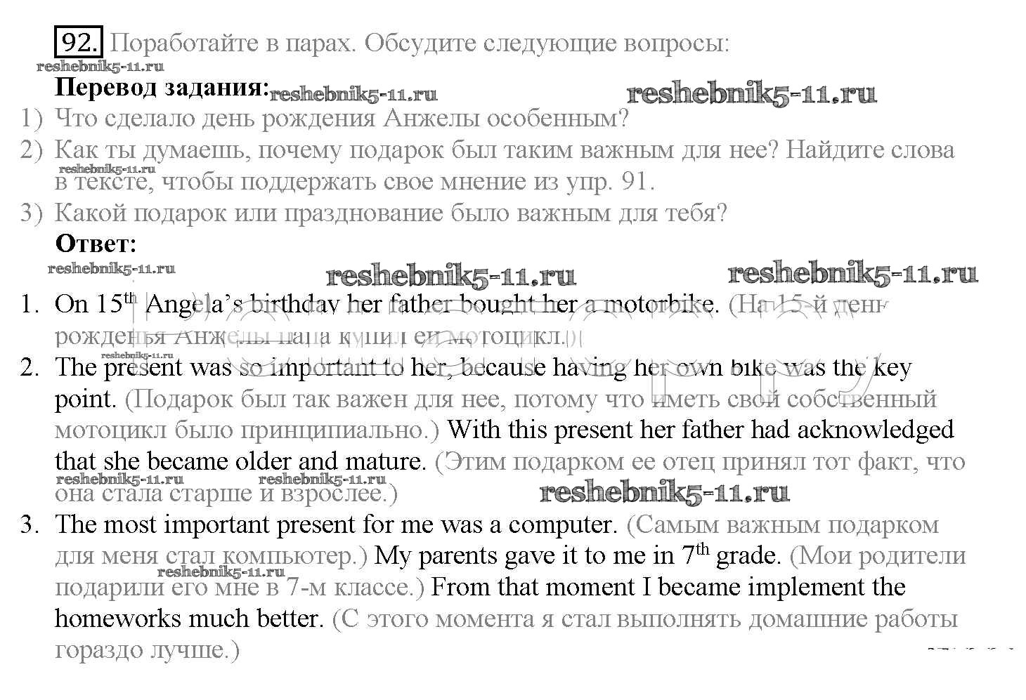 Готовая домашняя работа с ответами по Английскому языку за 10 класс Биболетова, Денисенко, Трубанева Учебник Enjoy English Аст/Астрель 2016 ФГОС - Unit 2. Talking on family matters 92