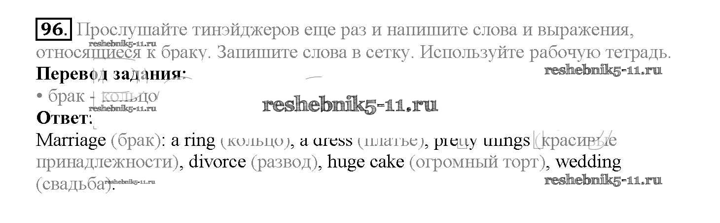 Готовая домашняя работа с ответами по Английскому языку за 10 класс Биболетова, Денисенко, Трубанева Учебник Enjoy English Аст/Астрель 2016 ФГОС - Unit 2. Talking on family matters 96