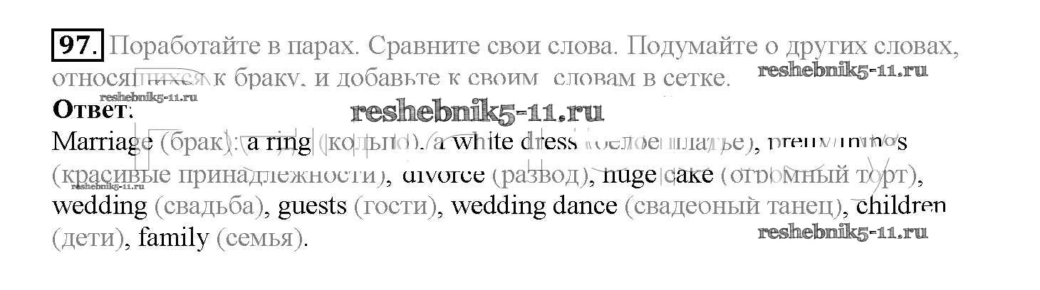 Готовая домашняя работа с ответами по Английскому языку за 10 класс Биболетова, Денисенко, Трубанева Учебник Enjoy English Аст/Астрель 2016 ФГОС - Unit 2. Talking on family matters 97