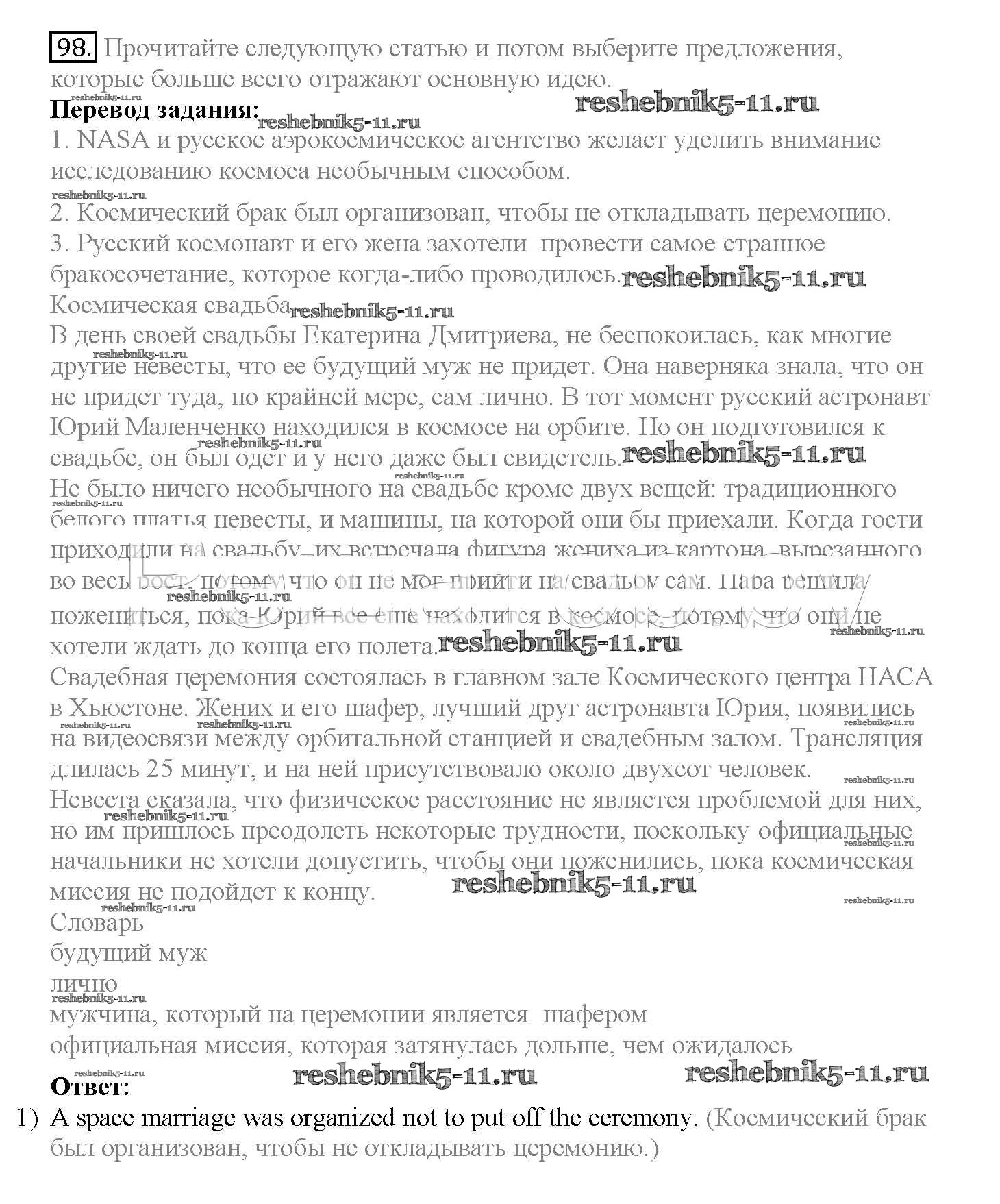 Готовая домашняя работа с ответами по Английскому языку за 10 класс Биболетова, Денисенко, Трубанева Учебник Enjoy English Аст/Астрель 2016 ФГОС - Unit 2. Talking on family matters 98