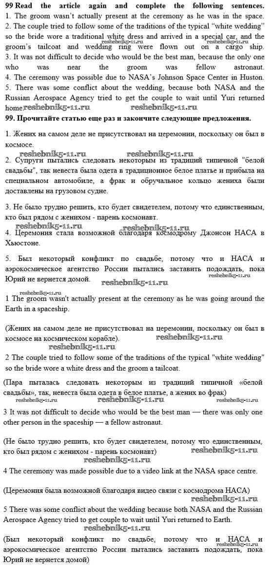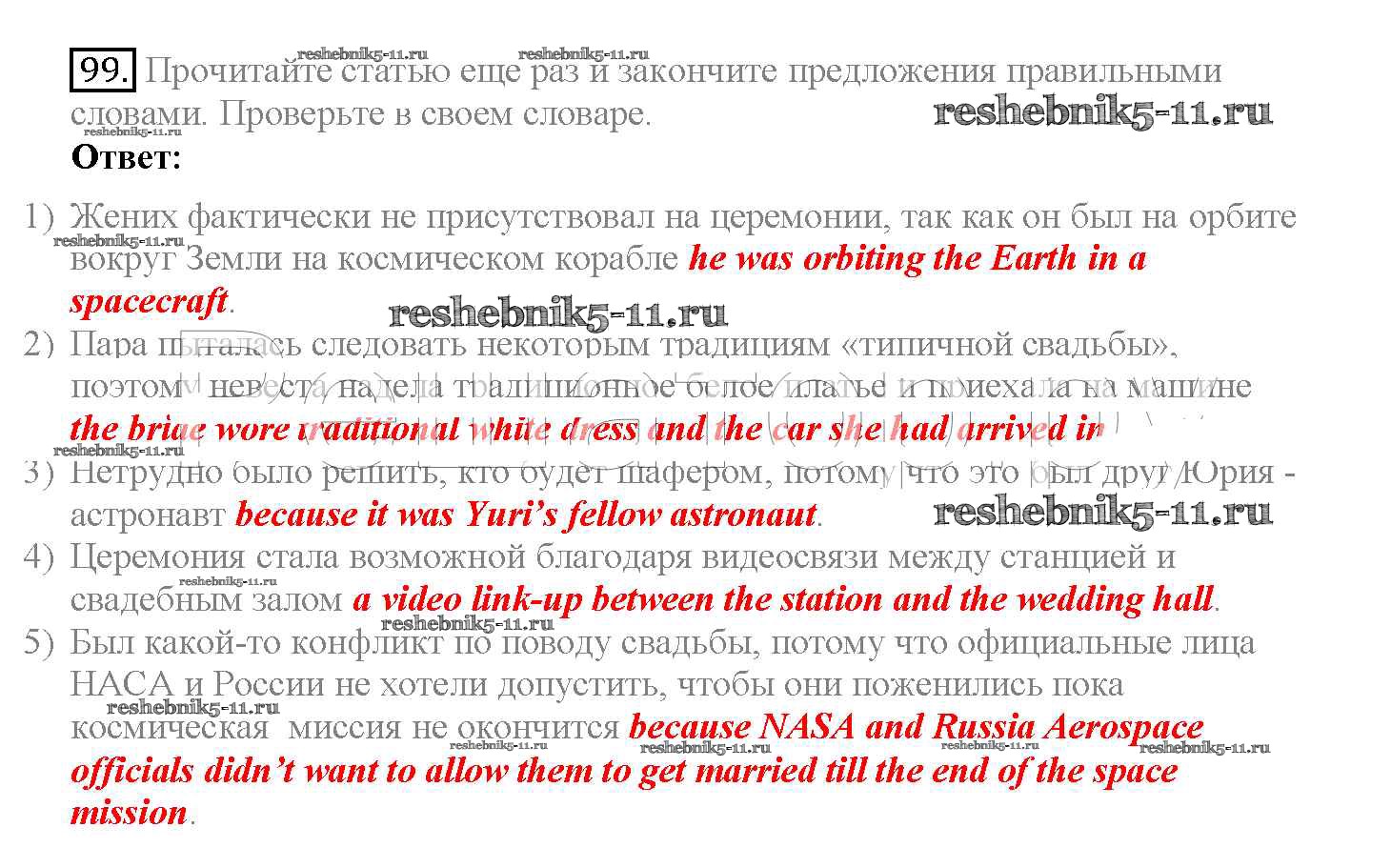 Готовая домашняя работа с ответами по Английскому языку за 10 класс Биболетова, Денисенко, Трубанева Учебник Enjoy English Аст/Астрель 2016 ФГОС - Unit 2. Talking on family matters 99