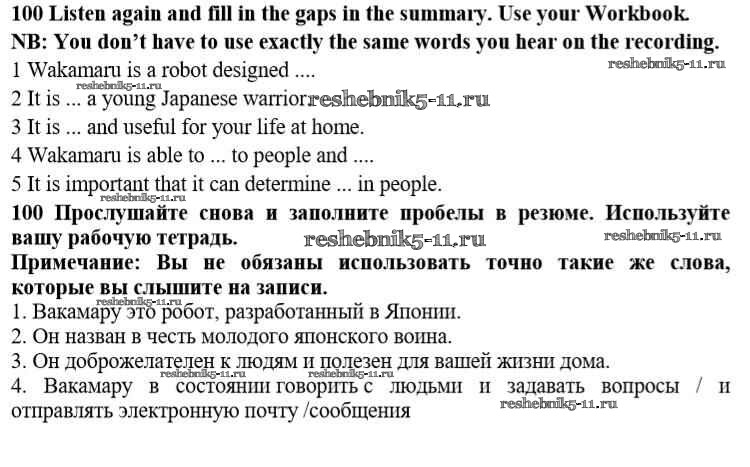 Готовая домашняя работа с ответами по Английскому языку за 10 класс Биболетова, Денисенко, Трубанева Учебник Enjoy English Аст/Астрель 2016 ФГОС - Unit 3. Civilisation and progress 100