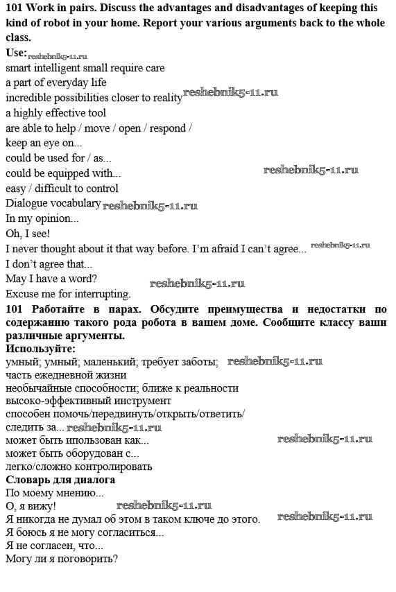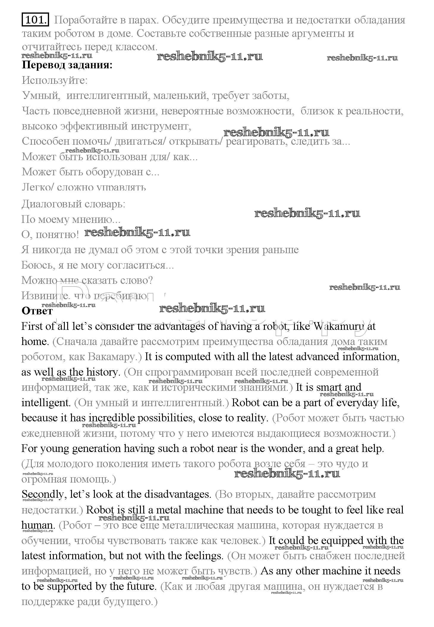 Готовая домашняя работа с ответами по Английскому языку за 10 класс Биболетова, Денисенко, Трубанева Учебник Enjoy English Аст/Астрель 2016 ФГОС - Unit 3. Civilisation and progress 101