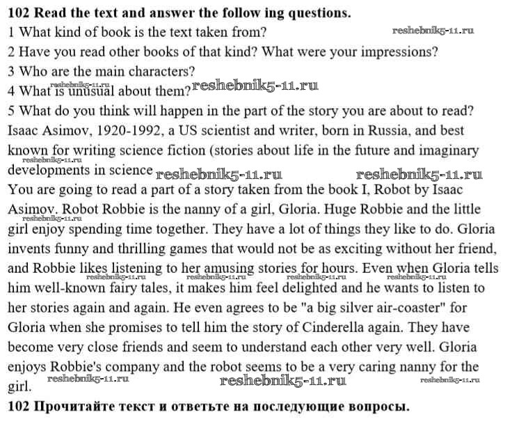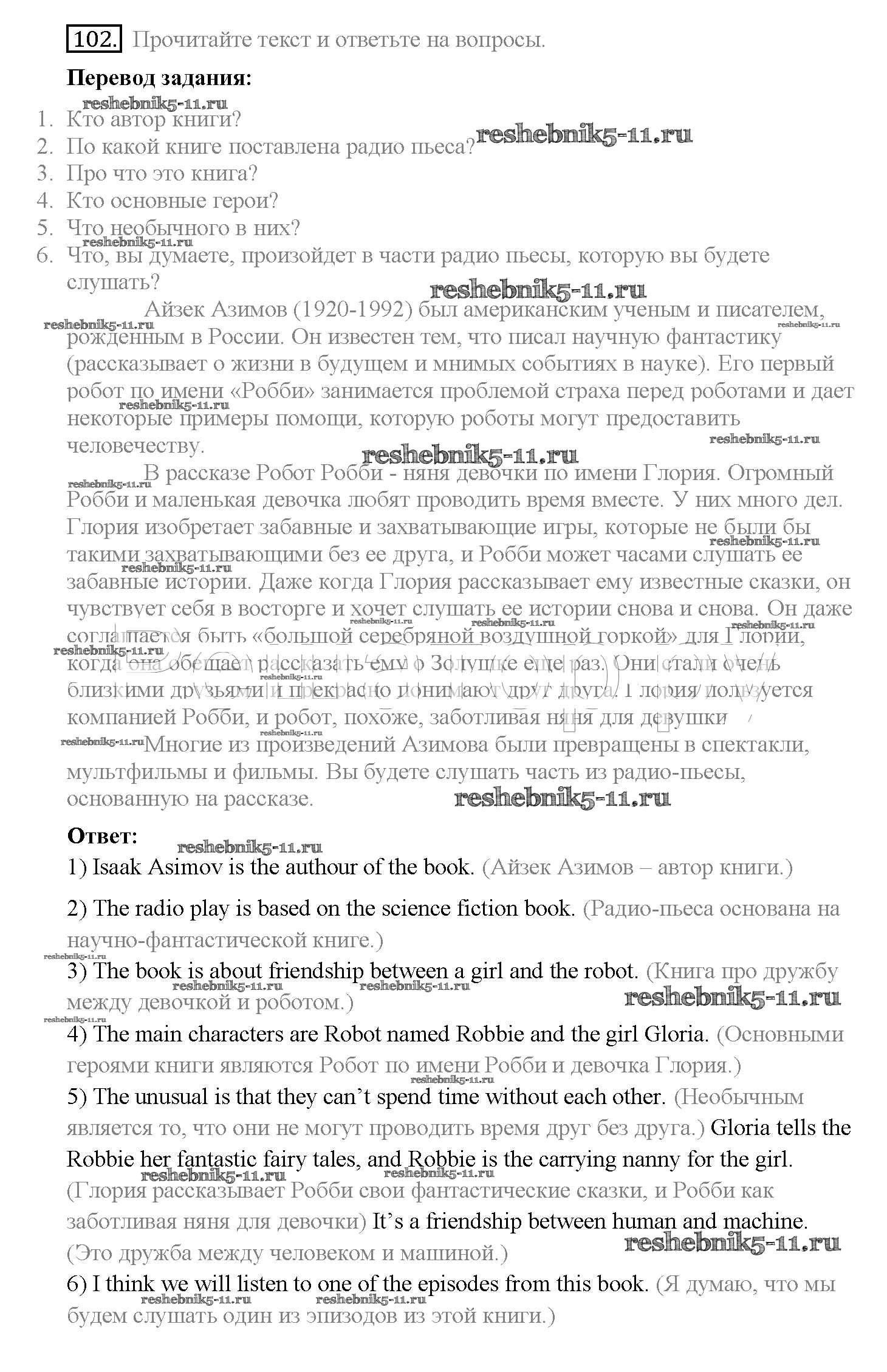 Готовая домашняя работа с ответами по Английскому языку за 10 класс Биболетова, Денисенко, Трубанева Учебник Enjoy English Аст/Астрель 2016 ФГОС - Unit 3. Civilisation and progress 102